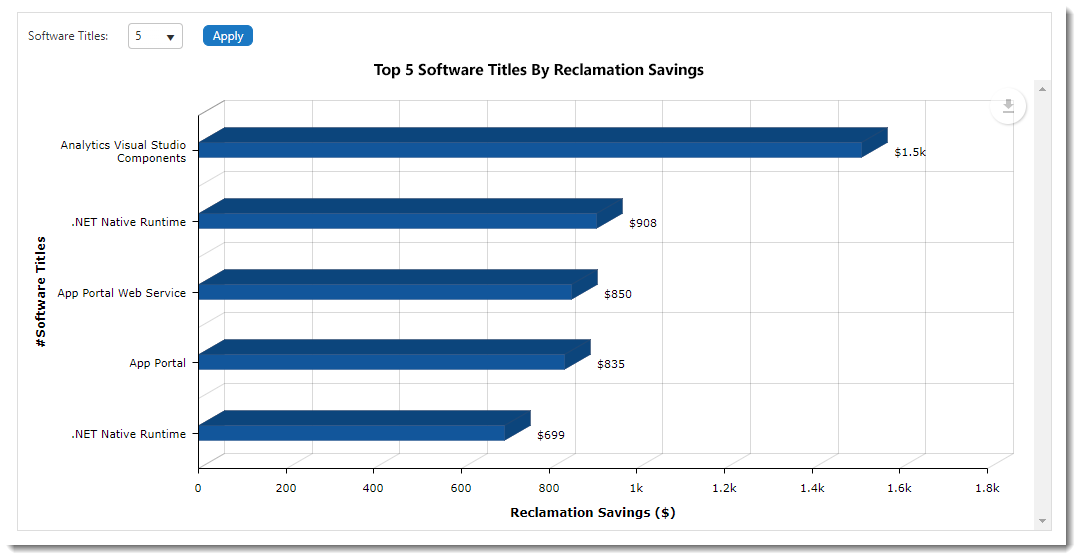 The number of titles displayed in the graph is based upon the number selected in the Software Titles drop-down. Selectable values are 5, 10, 25, 50, 100. The default is 5.