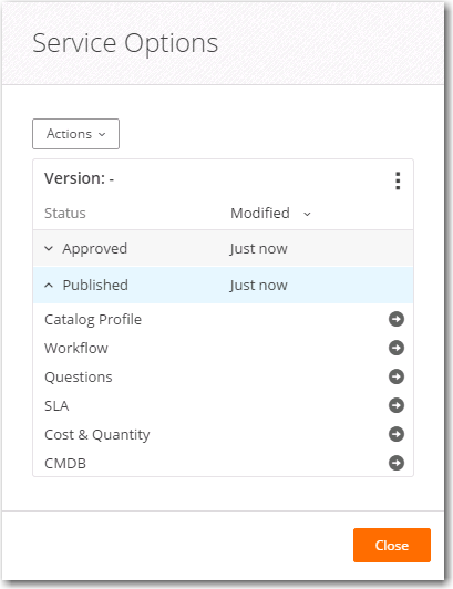 22. From the Actions menu, select Approve & Publish. The Status for Approved and Published is updated to Just now.