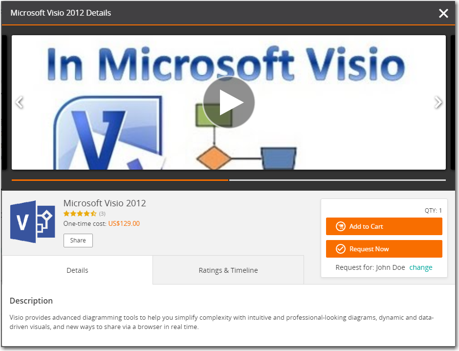 3. Click on the catalog item that you want to request. Detailed information about that catalog item is listed.