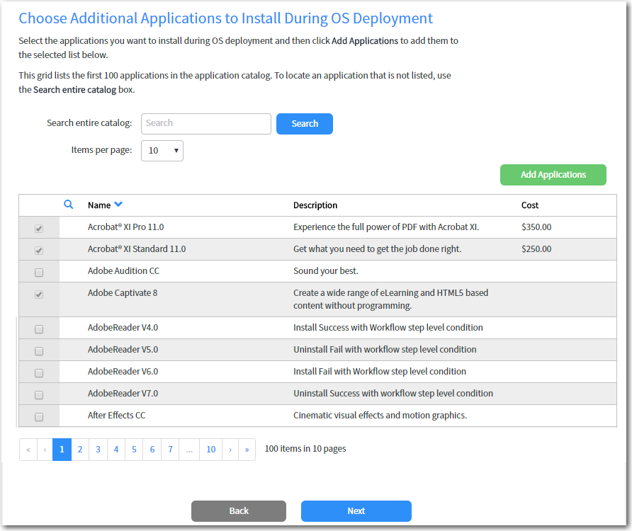 Select the applications that you want to migrate and then click Next. The Choose Additional Applications to Install During OS Deployment panel opens. Applications that have already been selected in previous panels are already selected and cannot be unselected.