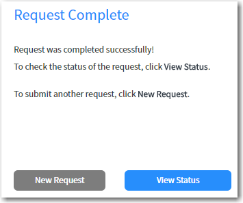 Click View Status to open the Request Status page, which lists the status for all submitted requests. For more information, see Viewing Request Status.