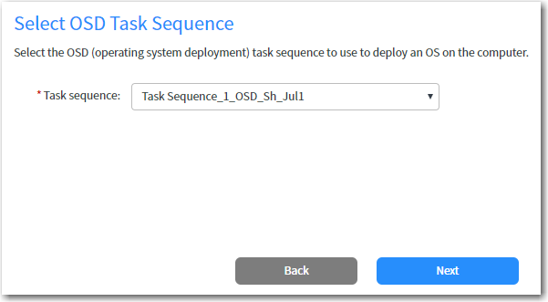 From the Task sequence list, select the task sequence corresponding to the OS you want to deploy, and then click Next. The Create New Computer panel opens.